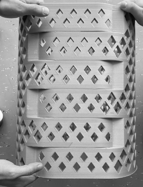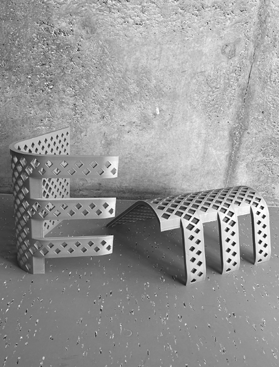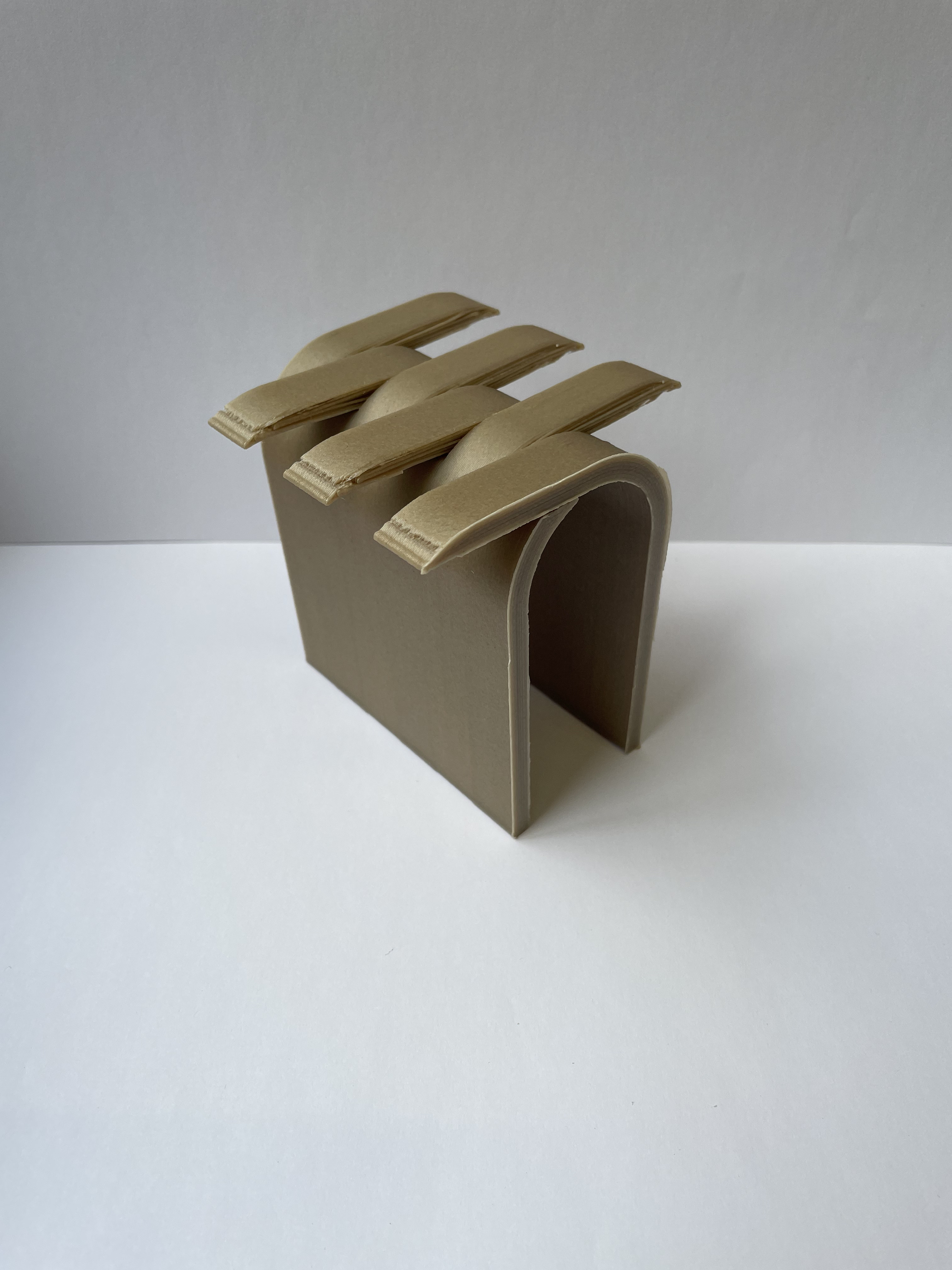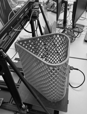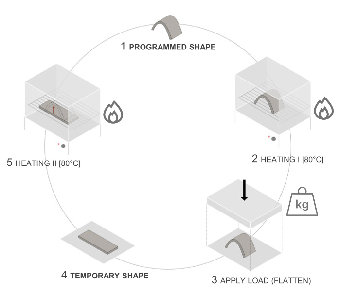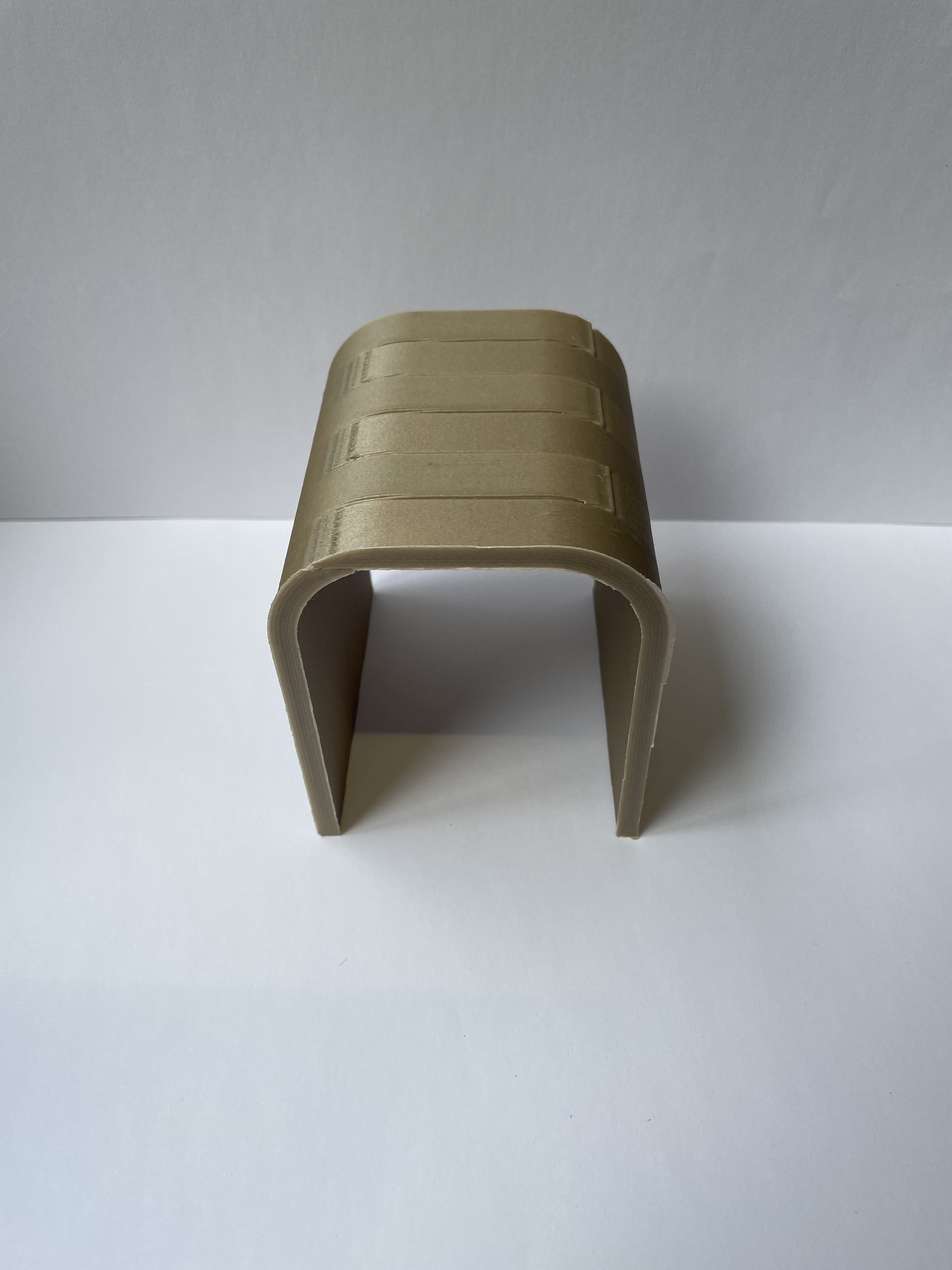 Shape Memory is a term used to describe a type of polymer that can be deformed into a temporary shape and return to its original programmed shape. When the programmed shape is triggered by external stimuli, in this case heat, it causes the polymer to become elastic thus creating the possibility to change it’s original shape when a downward force it applied to it. After countless material testing and iterative design processes, we were able to fabricate a 3D printed shape memory chair/stool in one print session.
